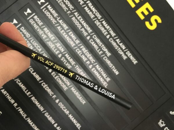 Ce crayon de papier thème voyage sera également utile le Jour J, vos invités l’utiliserons pour noter un petit mot de félicitations qui ira dans votre urne de mariage qui aura quant à elle des avions pour rappeler une fois de plus votre thème.