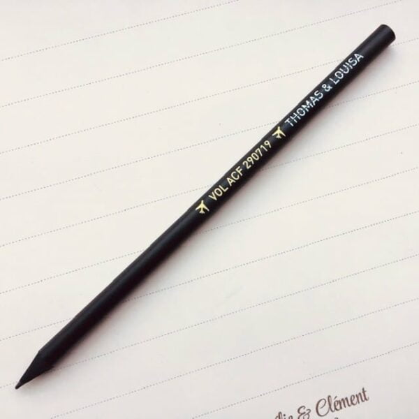Nous vous proposons un crayon de bois noir qui peut accompagner vos boites à dragées.