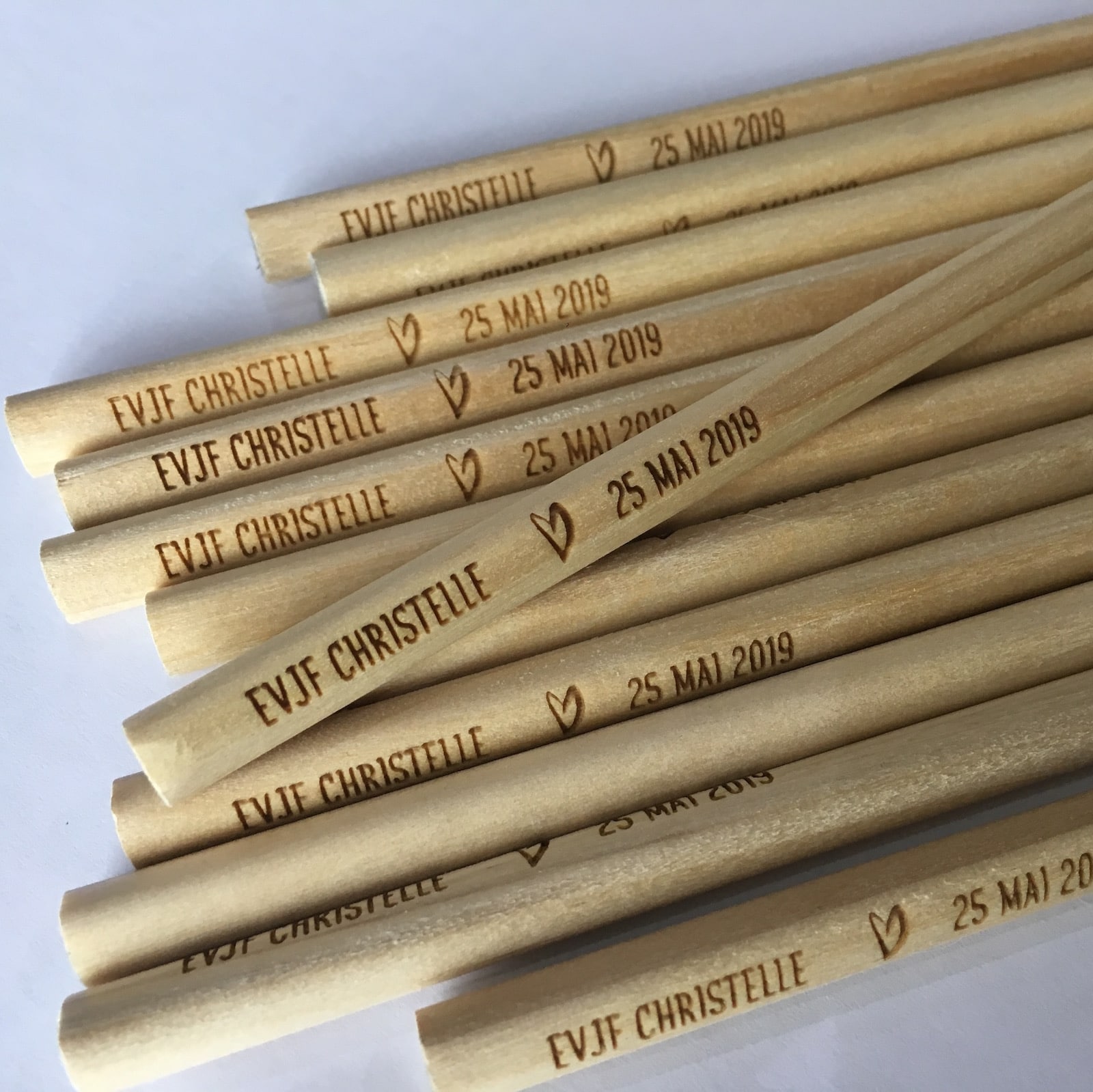 Le crayon à papier sera marqué de la date de votre EVJF Gravé dans le bois.